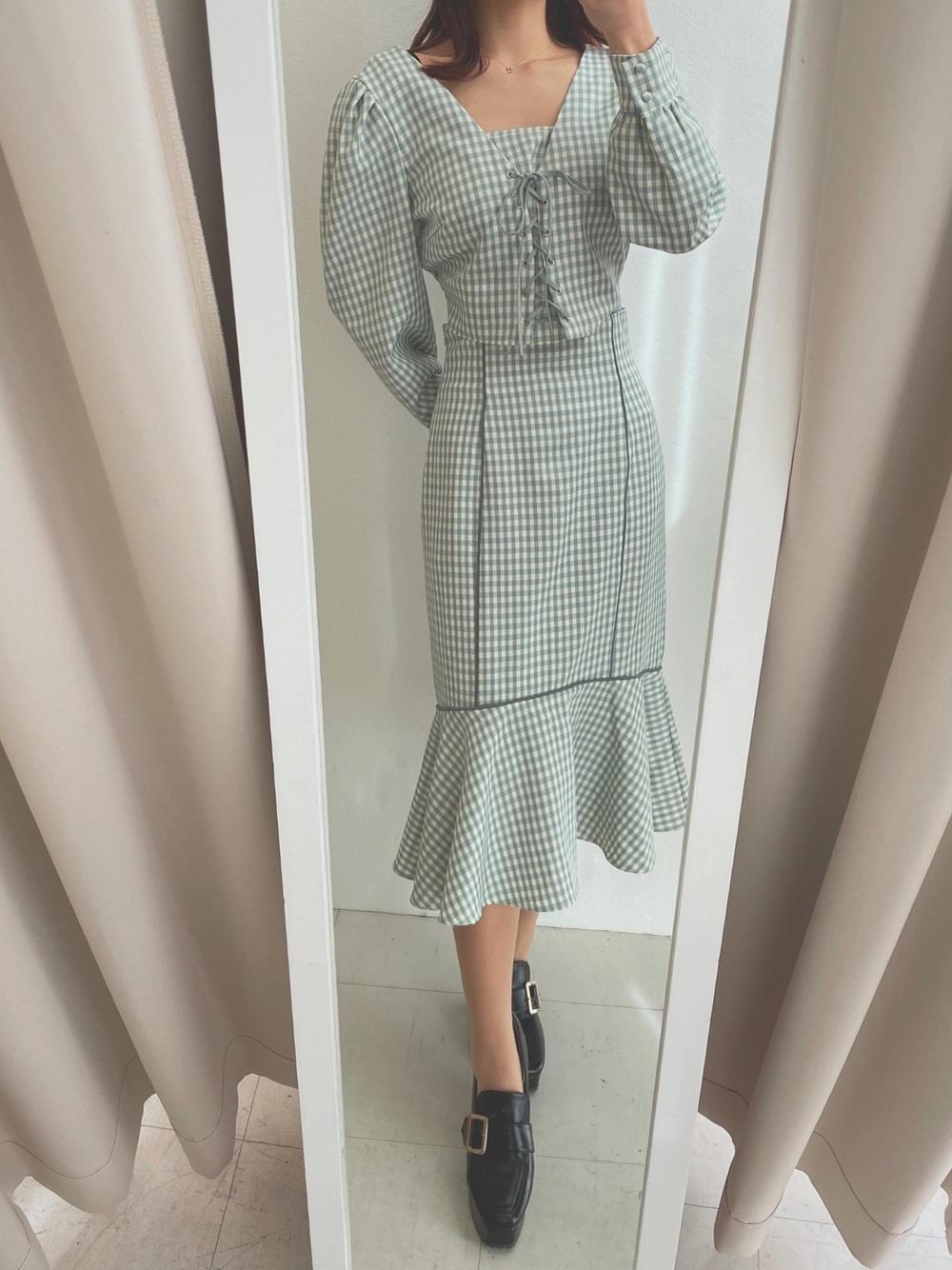 マーメイドシルエットのセットアップ×ギンガムチェックで、女性らしさ満載の今ドキコーデに♡