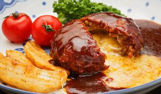 定番料理のハンバーグにチーズでスペシャル感をプラスした「チーズインハンバーグ」が人気。お肉×チーズの組み合わせはおいしさもバツグン!
