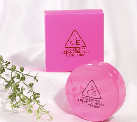 ピンクのパクトが可愛い、3CEの「クリーミーコンパクトファンデーション」手軽で持続性が高い、おすすめクッションファンデーションです♡