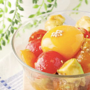 TKGとは、「卵かけご飯」の略。アボカドや卵の他に、しょうがやトマト、チーズなども入っていて、栄養満点な一皿です♪