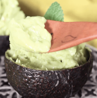 続いてご紹介するのは、口当たり濃厚なアボカド×バナナアイス。後味がサッパリしているので、夏の暑い日におすすめです♪アボカドの皮を器にしているので、インスタ映えもバッチリ◎