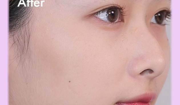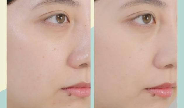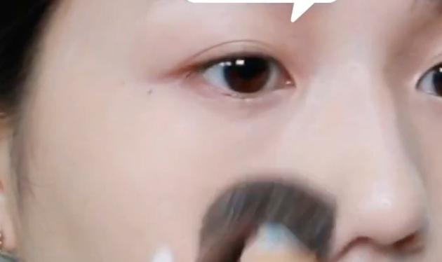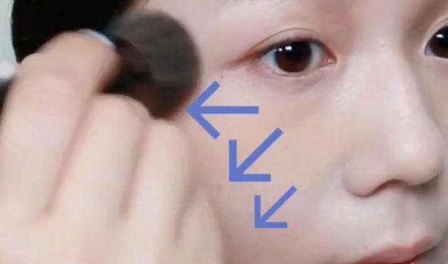 目の下の三角ゾーンはブラシで重ね塗りすることで、毛穴レスの肌に仕上がります。2と同様にブラシでクルクルとのせていきます。