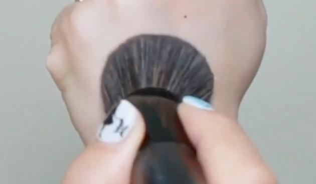 ファンデーションをブラシにとり、手の甲でなじませます。