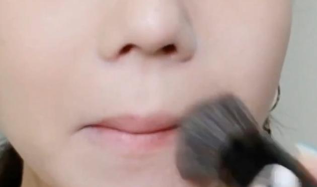 ブラシに余ったファンデーションを口周りにのせていきます。これによって厚塗り感のないナチュラルな肌に仕上がりますよ。