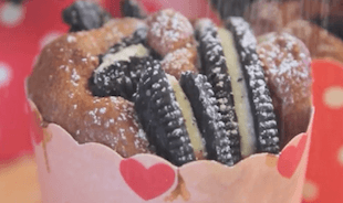 オレオのサクサク食感と、カップケーキのふわふわ食感がたまらない一品♡友達へのプレゼントにもおすすめです◎