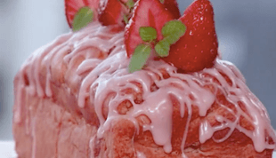 ホットケーキミックスを使った見た目もかわいいいちごのパウンドケーキのレシピです。