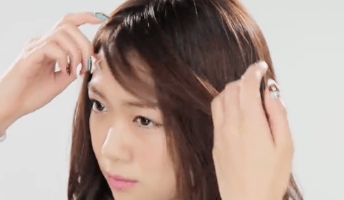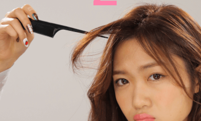 まず、上にあげたい分の前髪を取りましょう。目安は前髪全体です!