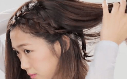 耳上まできたら、そこから三つ編みにして毛先まで続けていきます。
