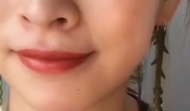 ブラウンリップ。見た目は赤っぽいですが、唇に載せるとピンクが強くなります。一見ブルべ肌向けですが、イエベ肌さんになじみやすいピンクブラウンですよ♪