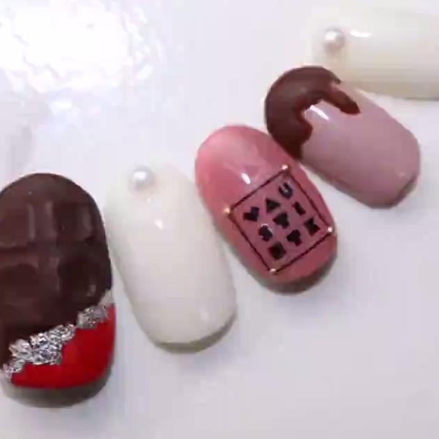 チョコといえば、やっぱり板チョコ!板チョコを取り入れたネイルは面白くてかわいいので、友達に注目されること間違いなしです。