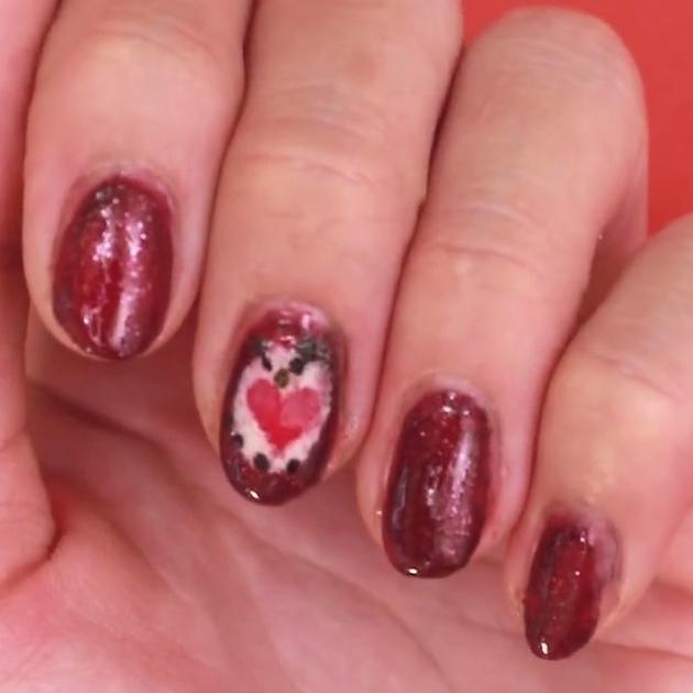 簡単にできて凝ったデザインのネイルがしたい方におすすめなのが、くり抜くだけのハートネイル。ハートの部分が強調されて、とってもユニークなネイルです♡