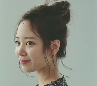 前髪を後ろにまとめて、デコ出しスタイルに。高めのお団子に後れ毛を適度に出して、抜け感のあるヘアアレンジに仕上げましょう。