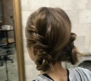 後れ毛をコテでいい感じに巻いたら、メッシーバンの完成です!