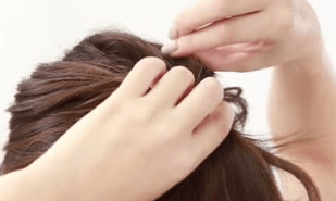 髪をねじって、ゴムにぐるぐるっと巻きつけてお団子をつくります。