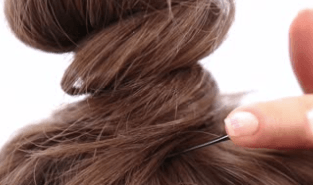 お団子から出た毛先の1/3を、結び目にぐるぐるっと巻きつけます。そのあと、ヘアクリップでしっかり固定します。