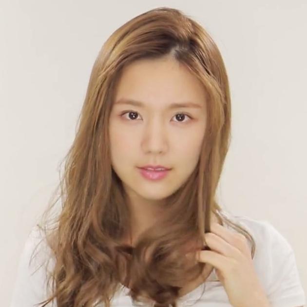 ヘアアイロンを使って、おくれ毛をウェーブ巻きにします。