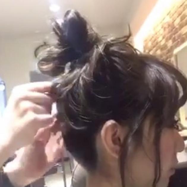 抜け感のあるお団子ヘアの完成です♡