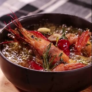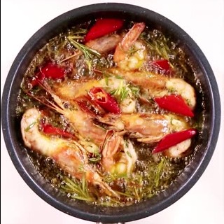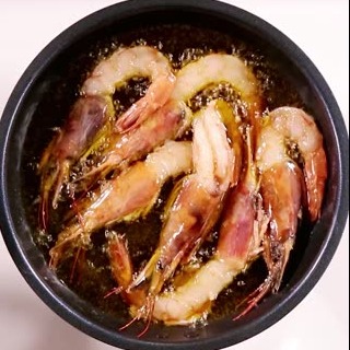 数あるアヒージョの中で一番人気で、一番王道な【エビのアヒージョ】。頭や尻尾を残すことで、旨味がオイルにも移って簡単にプロの味にできちゃいます♪ スペインではGambas al ajillo (ガンバス アルアヒージョ)と呼ばれどんなバルにもある定番なので、ぜひ作ってみてください♡