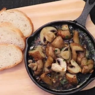 マッシュルームに火が通ったら、パセリをかけて、お皿にもりつけたら完成です♪