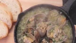 あさりのアヒージョも定番で、特にスペイン北部で食べられています。白ワインの香りとアサリがとてもマッチしますよ♡