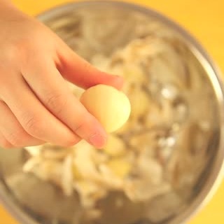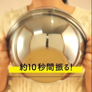 ボウルの中ににんにくをいれます。同じサイズのボウルでふたにして、10秒間くらい力をいれて振ります。