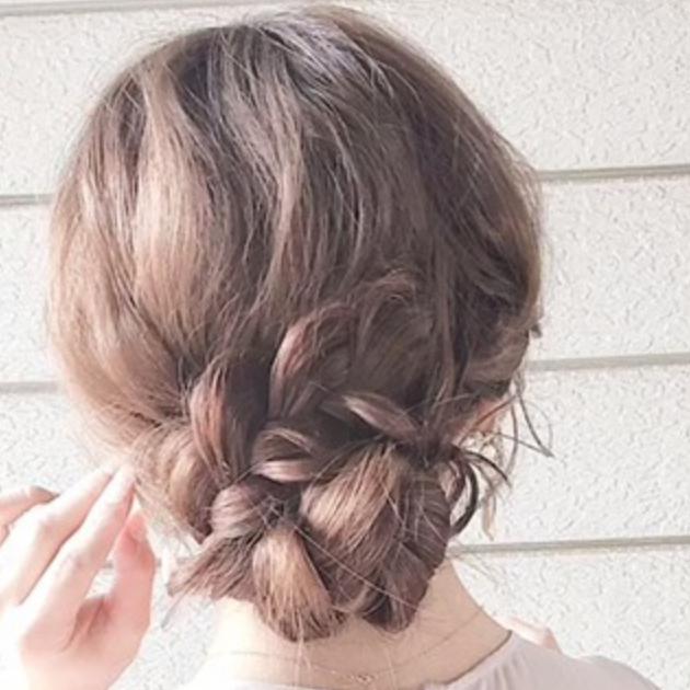 用意するのはゴム2つとアメピン2本!三つ編みだけゆるふわまとめ髪ができちゃうんです。