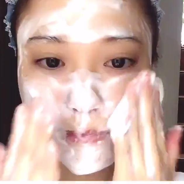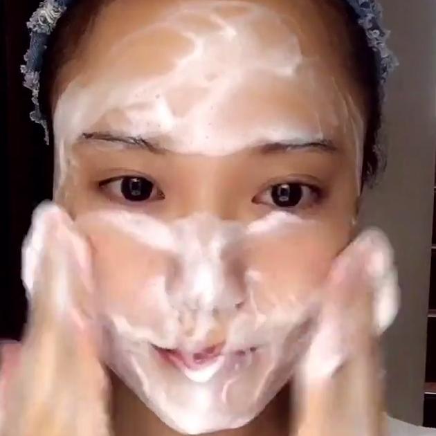 顔の内側から洗っていきます。外に向かって円を描くイメージで細かく動かしながら洗いましょう。指の腹で優しくなでるように洗ってください!