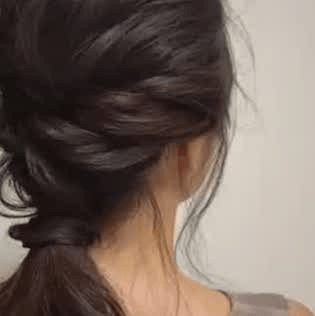 黒髪でもかわいいオフィスアレンジ。凝って見えるこちらも、ねじりながらポニーテールしているだけなので、実は簡単にできるんです♡