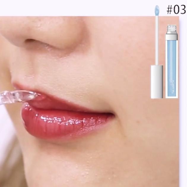 話題になったベビーブルー色のグロス。透け感とツヤ感がかわいいナチュラルなモテリップに。リップの上に重ねたら、柔らかく優しい印象に仕上がりますよ♡