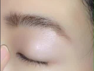 涙袋の部分に、手順2の同系色の小粒ラメが入ったアイシャドウをのせます。