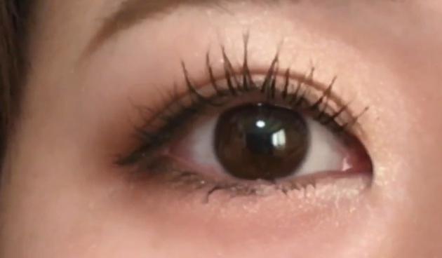 ブラウンのラメアイシャドウを下地にしているので、ナチュラル感がある濡れまぶたに仕上がります。