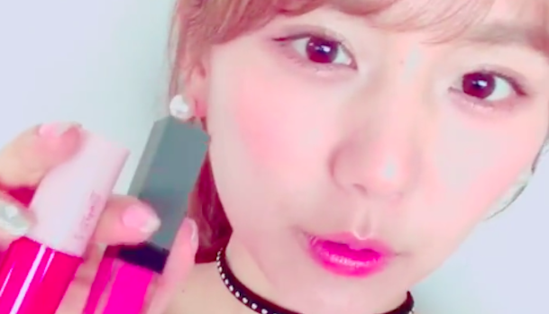 グロスを塗って仕上げます。今回使用するのは「THREE シマリング リップジャム 04」。春色のリップはやっぱり可愛らしいですね。
