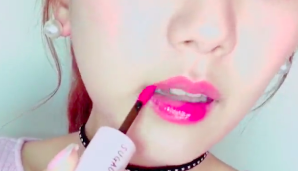 まずは、リップティントを塗ります。今回使用するのは、「SUGAO ジュレ感リップティント ジューシーレッド」。唇の輪郭にそって塗ったあと、軽く乾かしてください。