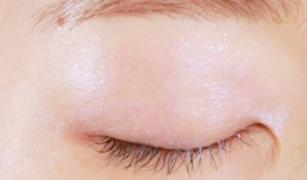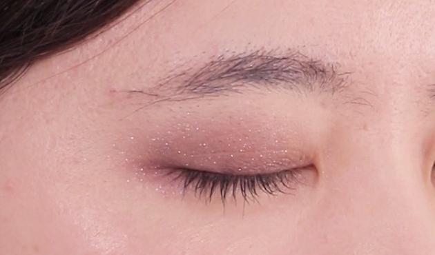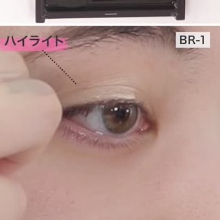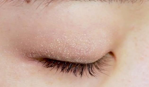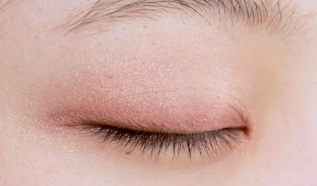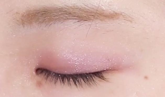 1番薄いハイライトのカラーAをまぶた全体に塗って、目元にきらめきをプラスします。