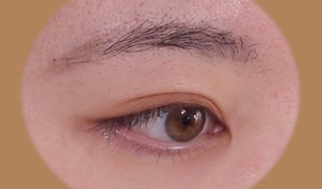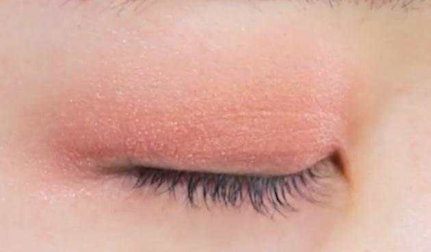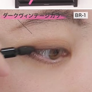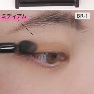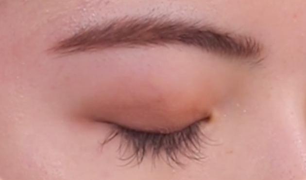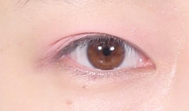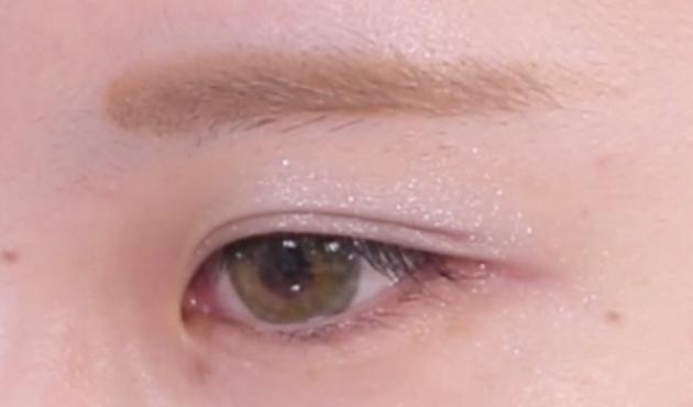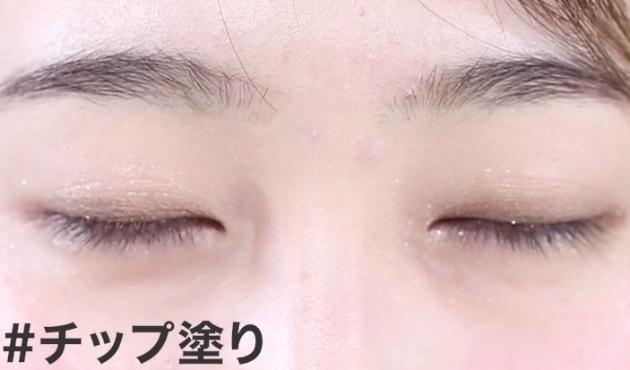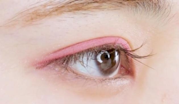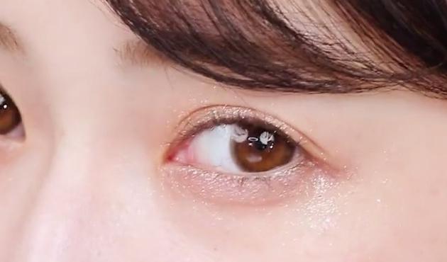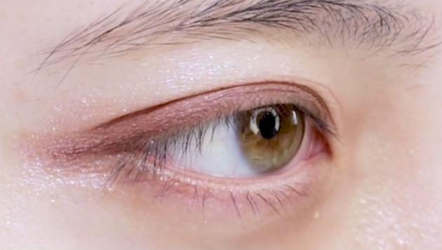カラーBを二重幅に塗ります。気持ち目尻側を濃くするのが目を大きく見せるポイント!