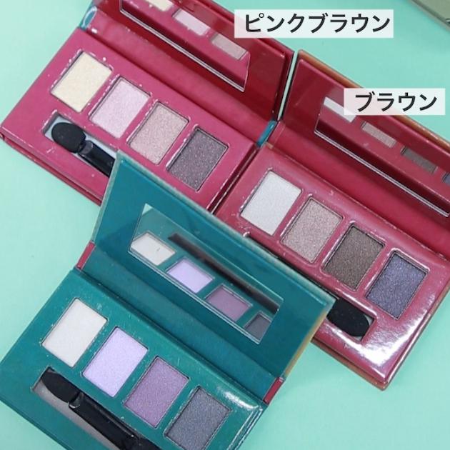 左上のベースカラーは、肌にとけこむような心地よい使用感でアイカラー下地効果があり、他3色はクリアな発色でグラデーションを作りやすいカラーのアイシャドウパレット。