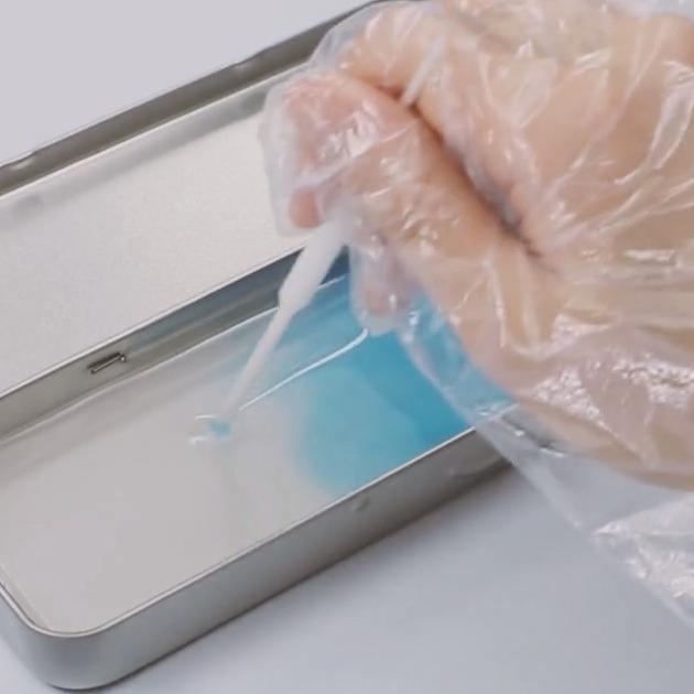 シアン(青色)に着色したレジンとクリアのレジンを流し込み、スティックでグラデーションを作ります。