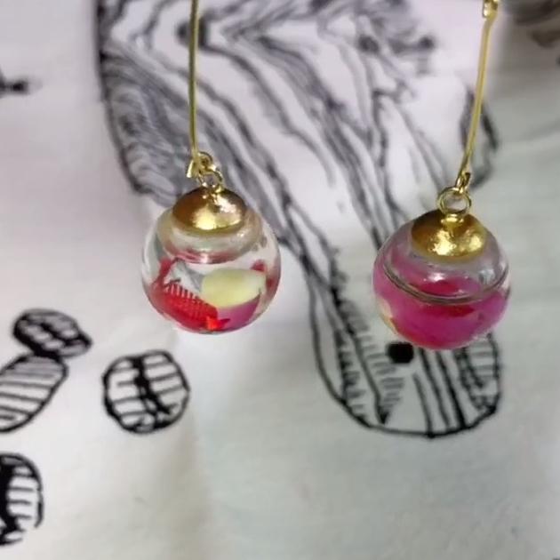 金魚の上からさらにドライフラワーやパール、ラメを散らしてください。
