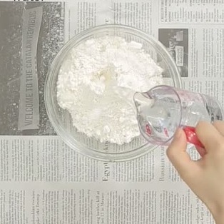 小麦粉と水を混ぜて、糊を作ります。