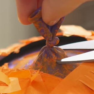 中の風船を割って、好きなお菓子をたくさん詰め込んだら、完成です♪