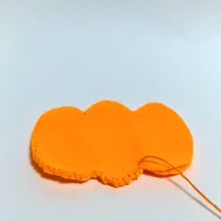 オレンジのフェルト2枚を重ね合わせ、上は開くようにしてそれ以外のフチを縫い合わせます。