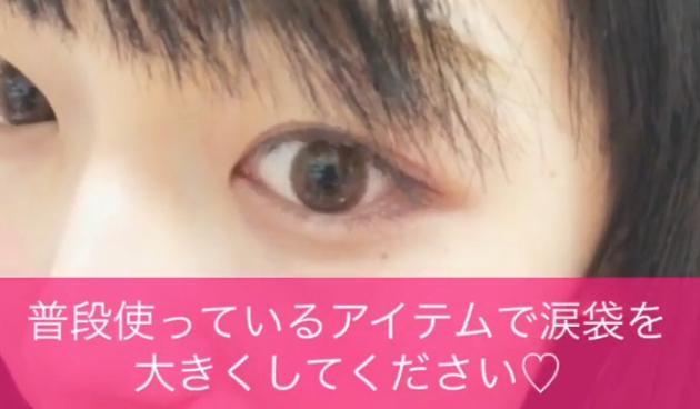 今回の動画では涙袋をつくっています。影も自然でぷっくりとした涙袋が完成しています!パールベージュのラメ感が強過ぎないのでGOOD。影はブラシでぼかすことで肌に馴染んでいます。