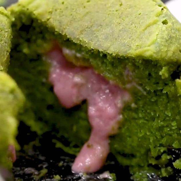 1. 生地の材料を混ぜ、シリコンカップに入れて50秒電子レンジで加熱する