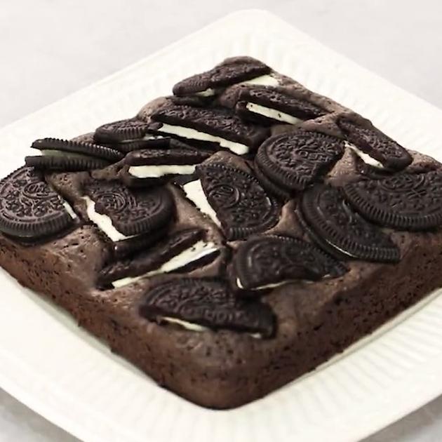 4. 型に流し入れ、オレオを割り上にトッピングする