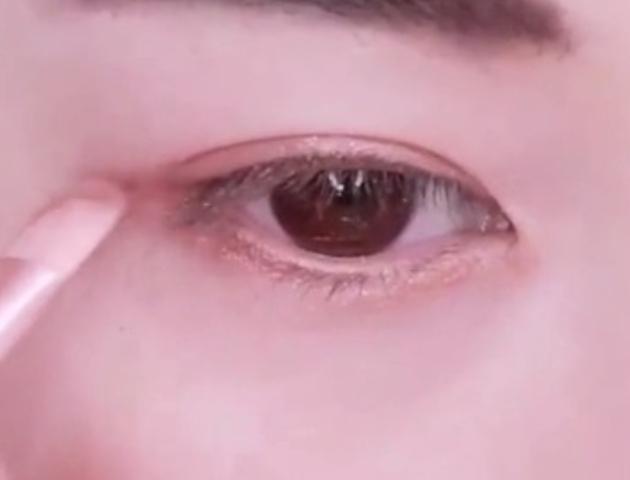 目頭に切開ラインを入れ、綿棒でぼかします。この時も、目の中にアイライナーが入らないように注意!