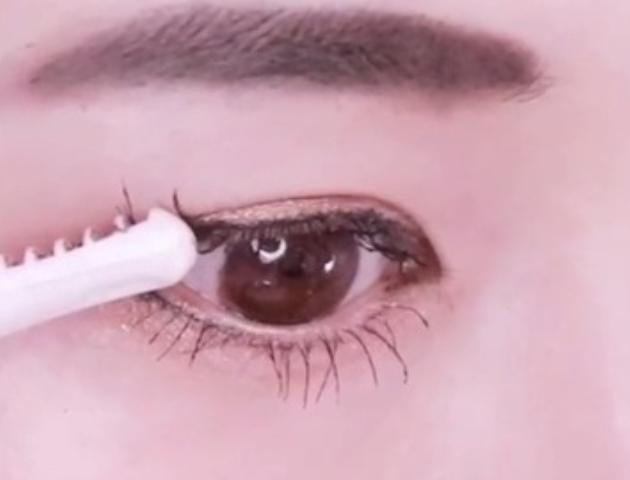 上下のまつ毛にビューラーをして、下まつげだけに、マスカラ下地を塗ります。