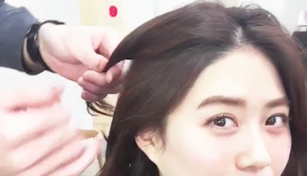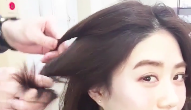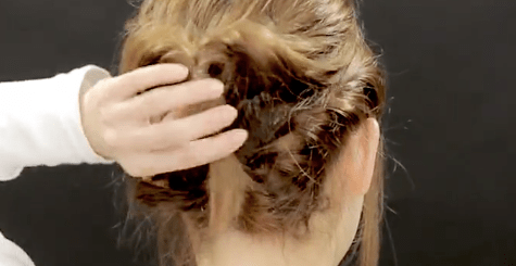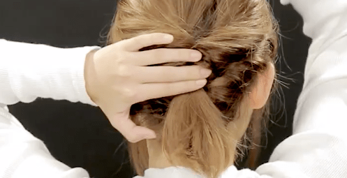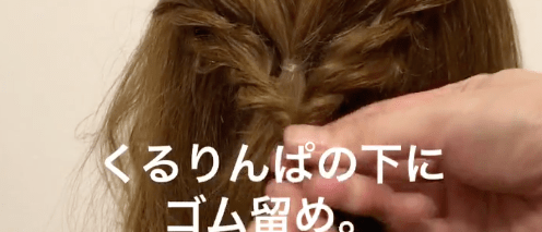 くるりんぱをする位置は、3で作った毛束の両サイドが交わるあたりがベスト♡