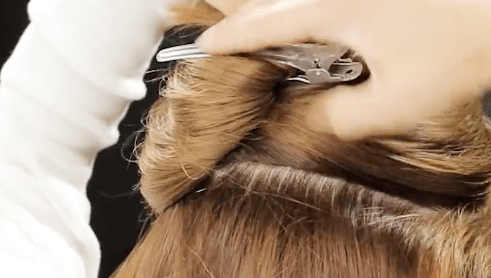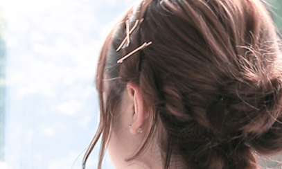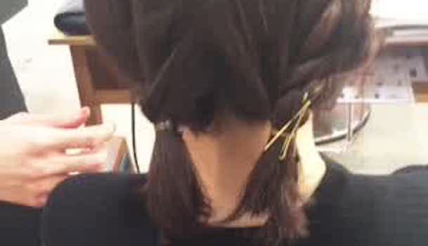 上の写真のようになったら、毛先をピンでとめましょう!そして、反対側でも同じことを繰り返します。