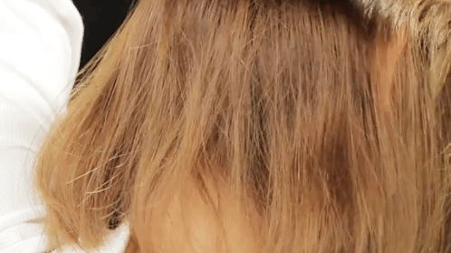 こめかみの位置から毛を取ると、上手く表面の毛をとることができます♪
