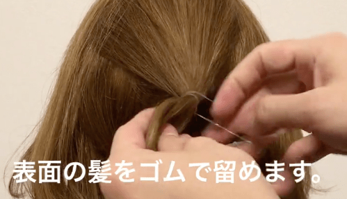 ここでとめる目的は「下半分をアレンジする時のジャマにならないため」なので、上でまとめておくと後ほどやりやすくなります♪